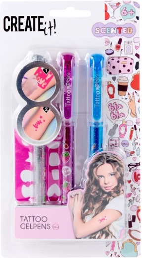 Deviens une petite tatoueuse et crée ton propre style avec les stylos de tatouage colorés et parfumés CREATE IT!. Grâce à l’encre gel pailletée, tes motifs seront éclatants et ludiques. Utilise les pochoirs inclus pour des formes précises, ou conçois un motif original exactement comme tu l’imagines. Les tatouages temporaires se rincent simplement à l’eau, tu peux donc expérimenter chaque jour.
