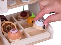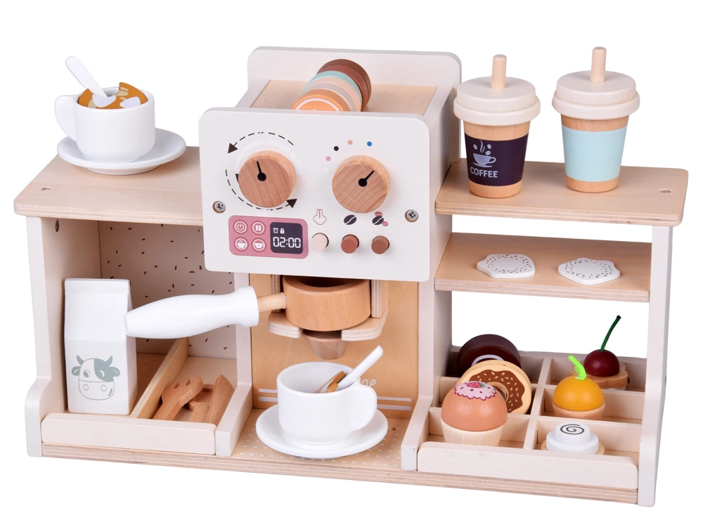 Découvrez la magie de l’univers barista avec ce café en bois qui ressemble et fonctionne comme un vrai. Les enfants peuvent « régler » l’intensité du café grâce aux boutons rotatifs, insérer le porte-filtre, choisir des capsules de café ou de thé, faire mousser le « lait » et servir des desserts sur des assiettes. Sa structure en bois robuste, ses peintures sûres et sa douce palette pastel garantissent durabilité et bel aspect dans la chambre.