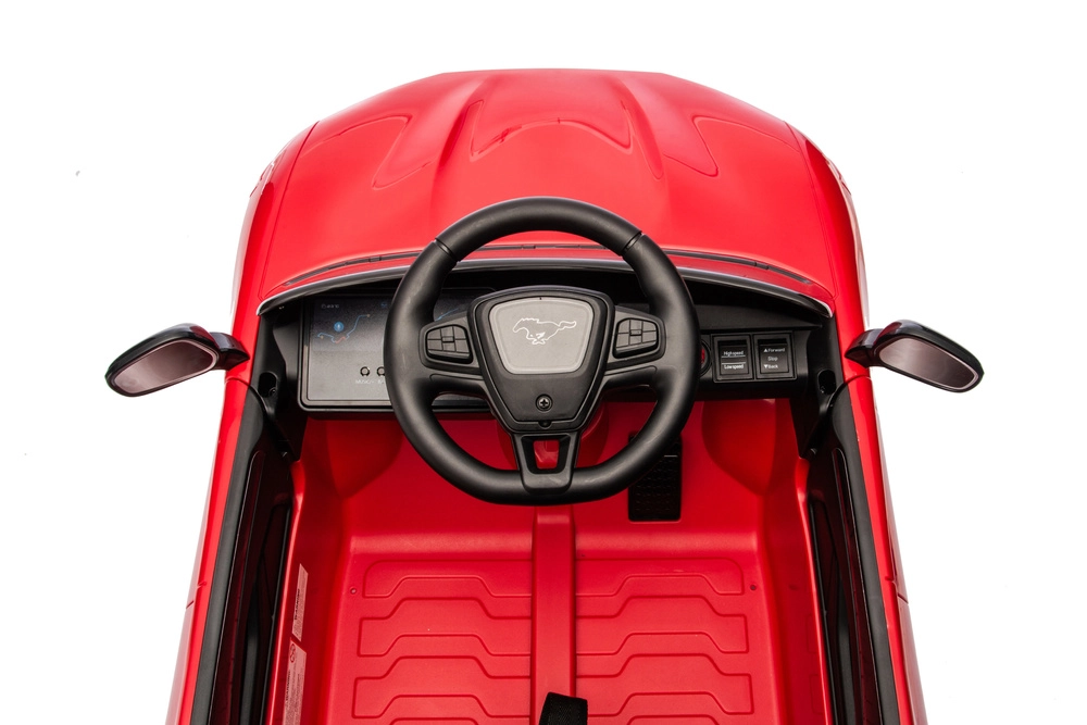La carrosserie aux lignes marquées, les jantes sport et les phares LED créent l’apparence authentique de la Mustang Mach‑E, qui séduit les enfants au premier regard.