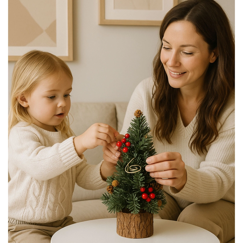 Le petit sapin de table est idéal pour les étagères, tables ou comptoirs d’accueil et crée instantanément une atmosphère festive.