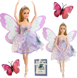 Découvrez un monde de fantaisie avec la poupée fée Emi, qui fascine par ses ailes de papillon scintillantes, sa robe pastel violette et ses membres articulés. Une couronne élégante, des petites chaussures stylées et une fabrication de qualité en matériaux sûrs transforment chaque jeu en un récit magique – une excellente idée de cadeau.