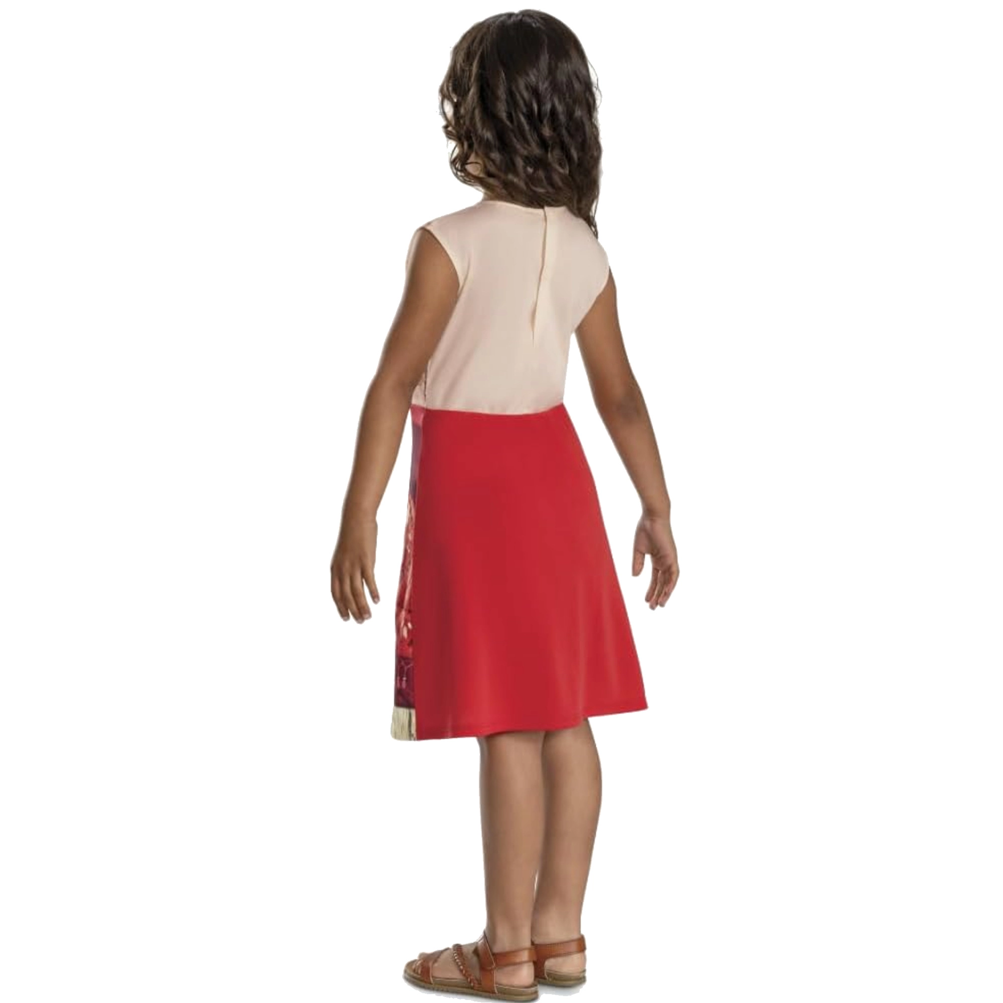 Le costume est conçu pour les enfants de 7–8 ans (taille recommandée 124–135 cm) et reflète parfaitement l’apparence de l’héroïne appréciée du film Vaiana Moana 2. Bretelle asymétrique, imprimés tribaux, effet de jupe superposée et finitions « herbe » donnent au déguisement un caractère authentique.