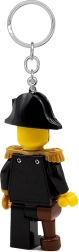 Minifigurine détaillée avec bicorne, épaulettes et éléments pirates, fidèle au style LEGO, qui se démarque sur vos clés ou votre sac à dos.