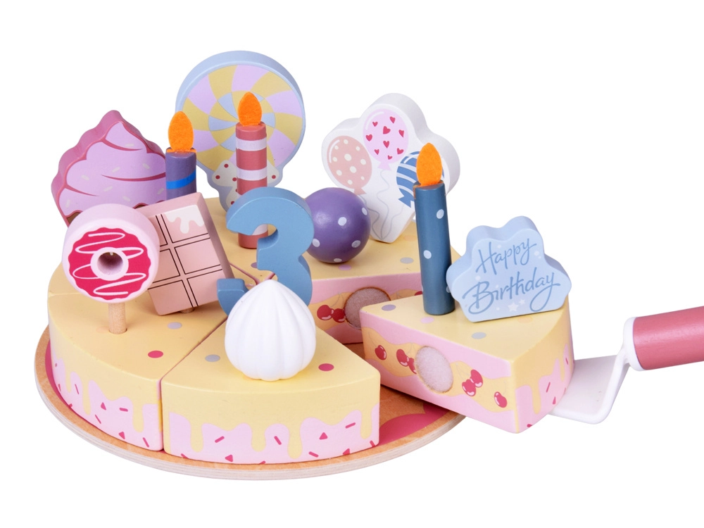 Adorable gâteau d’anniversaire en bois à découper qui transforme chaque jeu en fête. Les enfants apprécieront le glaçage créatif, la découpe en parts et le service. Bois finement poncé, peintures non toxiques et accessoires colorés (bougies, chiffres 1–5, friandises, pancarte Happy Birthday) favorisent la motricité fine, l’imagination et les jeux de rôle.