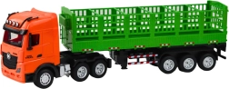 Cabine orange détaillée avec possibilité de détacher manuellement la semi‑remorque pour des scénarios de transport fidèles.