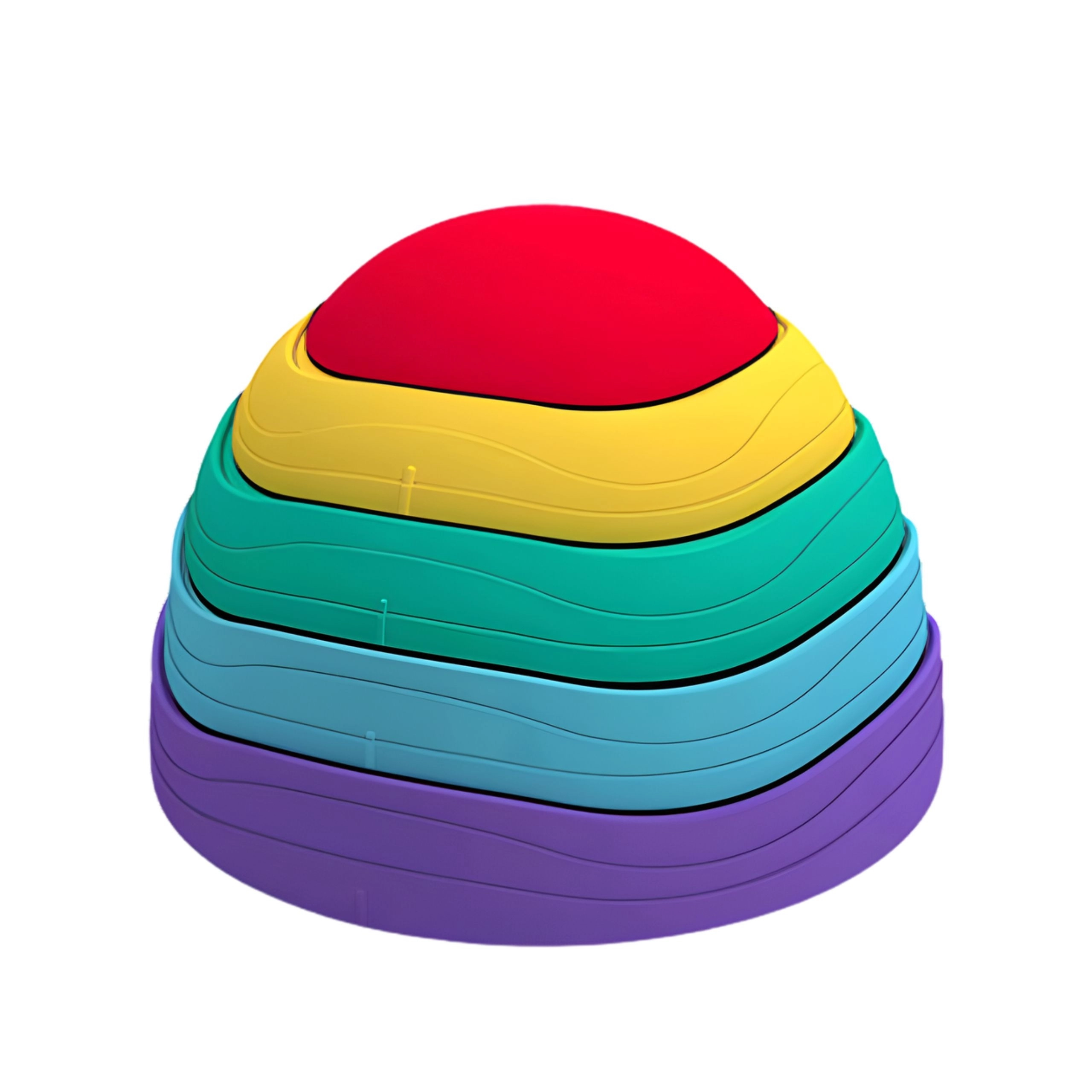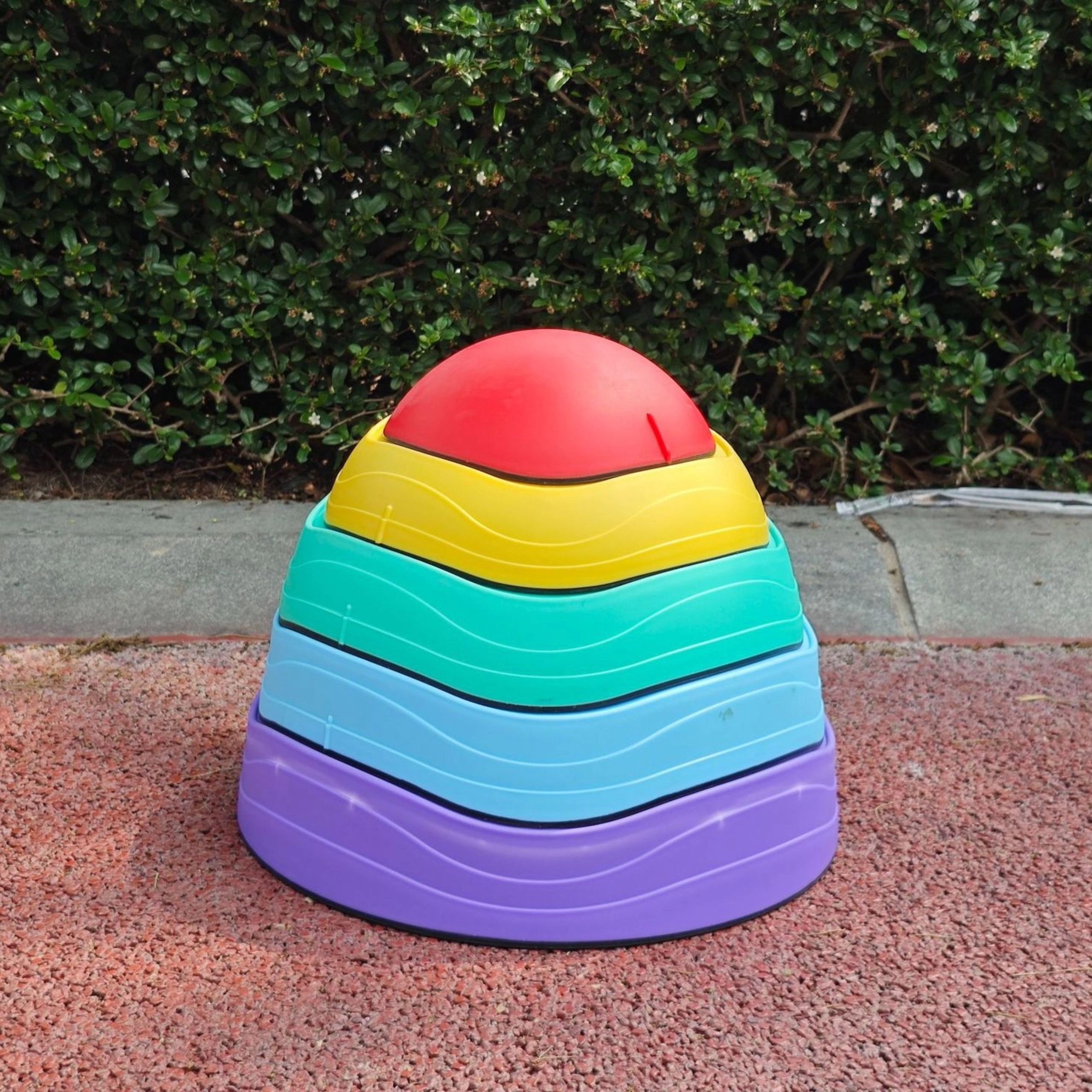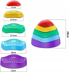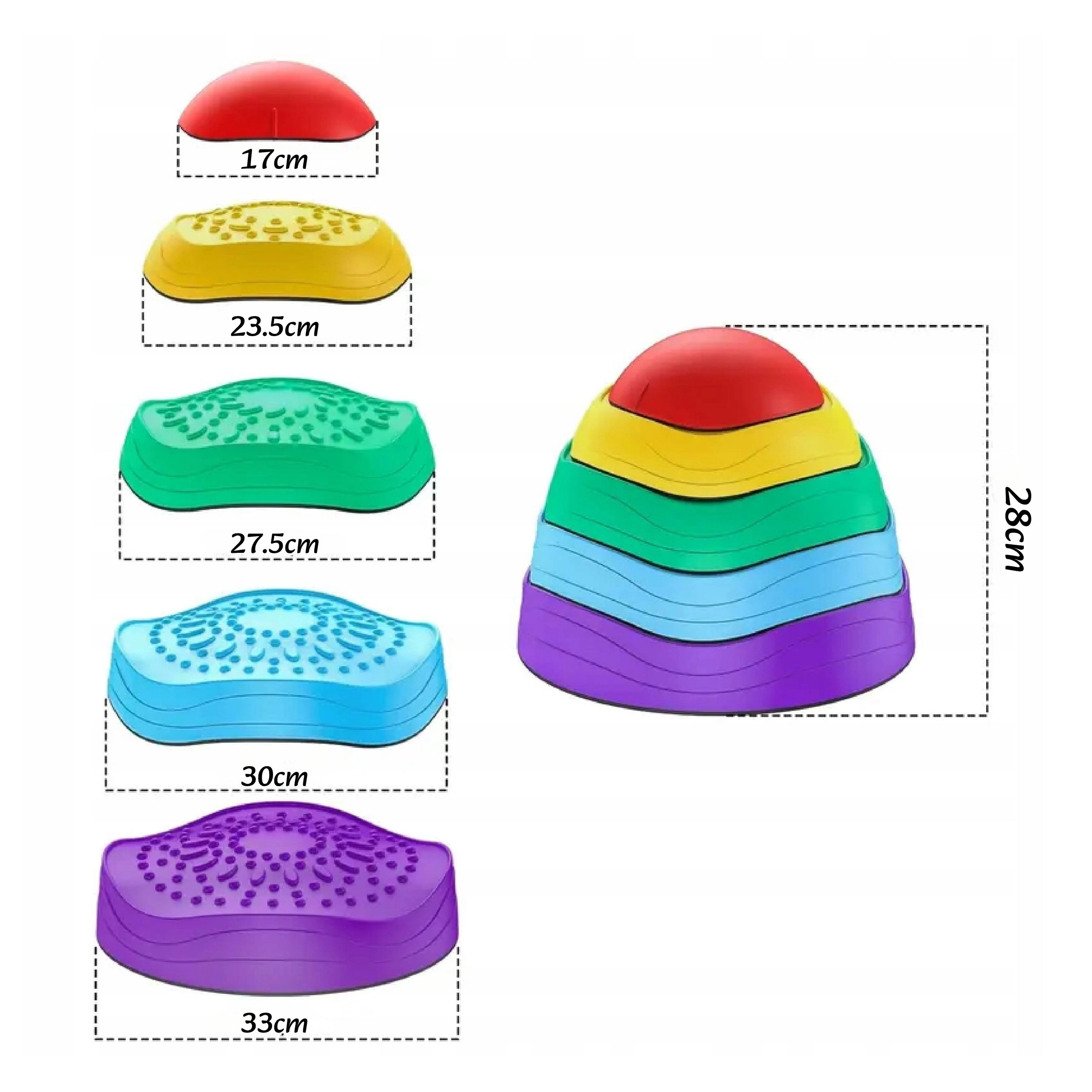 Grâce à la base antidérapante, les pierres restent stables pendant le jeu et la surface texturée stimule la sensorialité des pieds comme des mains. Le design empilable économise de la place au rangement et les couleurs vives incitent naturellement au mouvement.