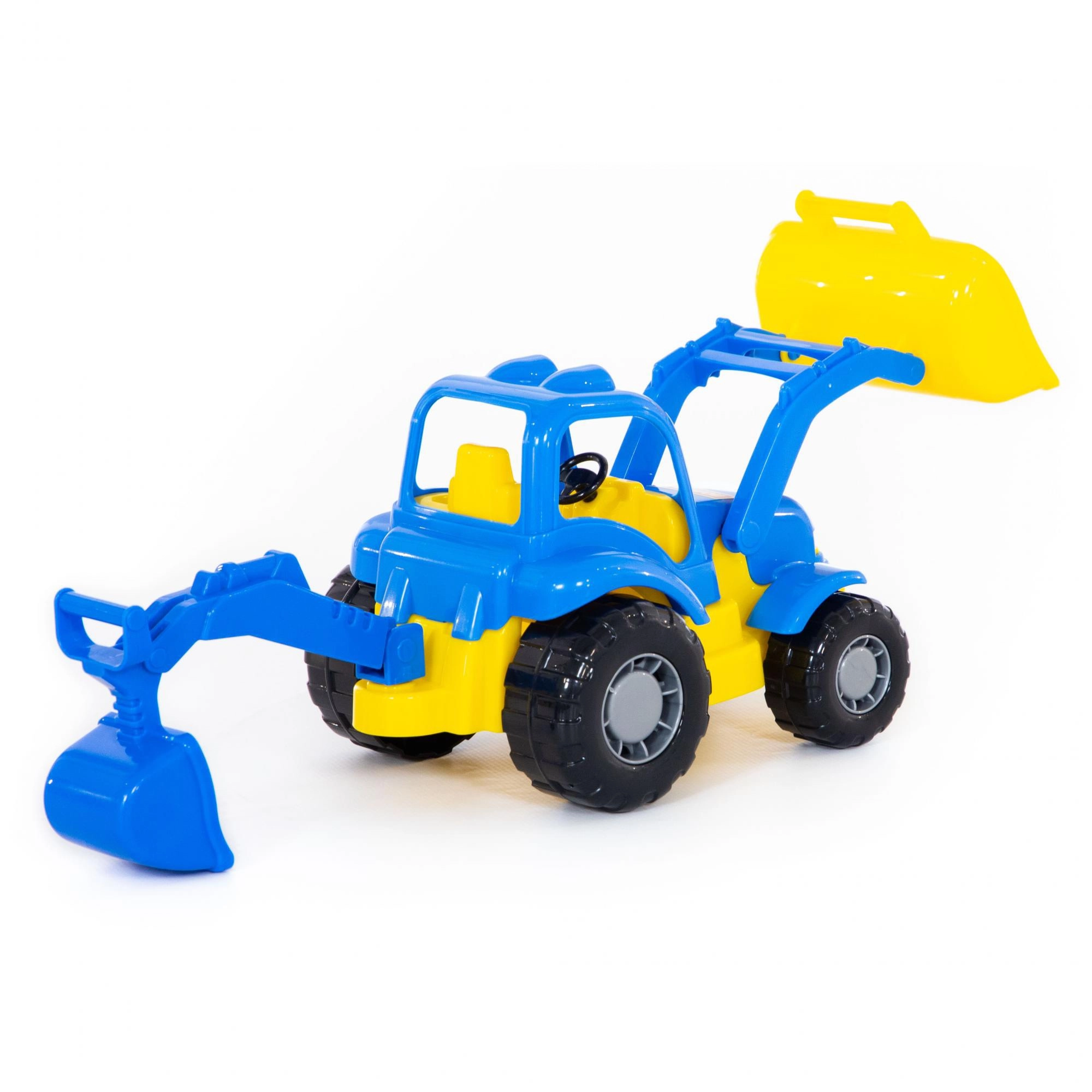 Ce tracteur pelle en plastique de 28 cm est un excellent choix pour les petits bâtisseurs. Grâce aux bras et godets mobiles, il permet de ramasser, transporter et déverser des matériaux tout en favorisant le développement de l’imagination et de la motricité fine. Sa construction robuste assure une longue durée de vie pour un jeu quotidien.