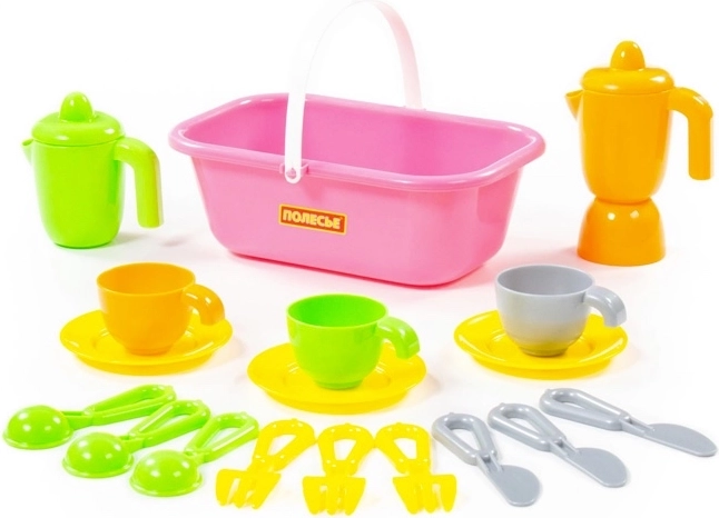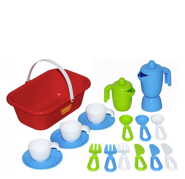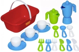 Un set de vaisselle pour enfants stylé Top Chef avec panier pour 3 personnes apporte tout ce dont les petits cuisiniers ont besoin pour jouer à cuisiner. Il comprend 18 pièces, est fabriqué avec des matériaux de qualité et sûrs par la marque Wader-Polesie Toys et est idéal pour les cuisines jouets à la maison comme pour le jeu en groupe. Les combinaisons de couleurs peuvent varier selon la disponibilité actuelle.