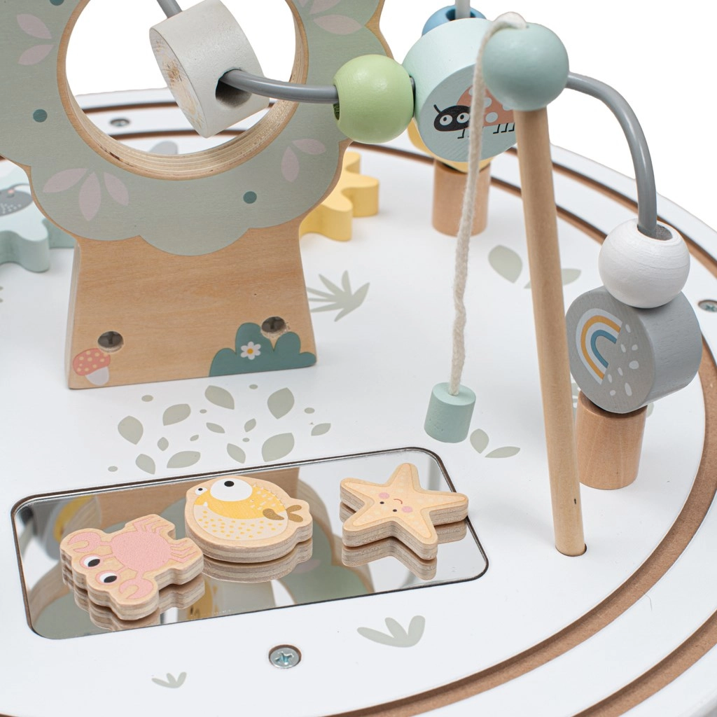 Découvrez la table multifonction en bois Montessori de la marque BABY MIX, qui combine fabrication de qualité, design moderne et éléments éducatifs pour développer la motricité et la pensée logique des enfants. Grâce au bois résistant, aux formes sûres et à des activités comme le labyrinthe de perles, les roues dentées ou la petite pêche magnétique, elle offre un divertissement riche de sens aux enfants dès 18 mois.