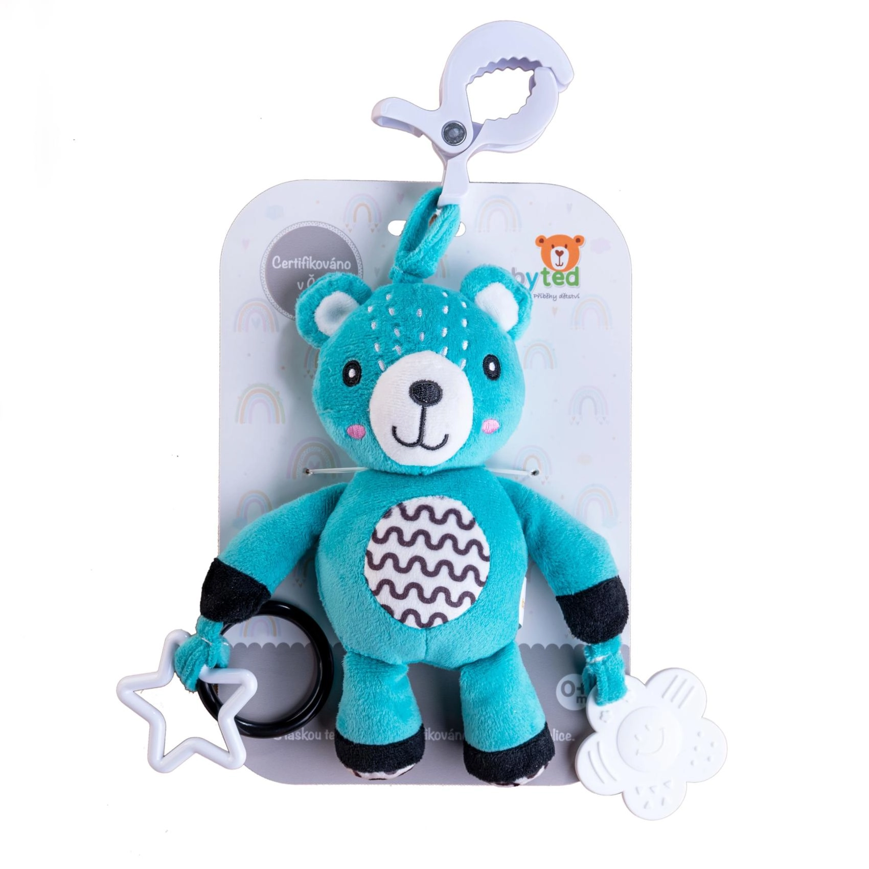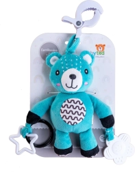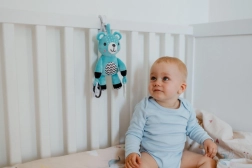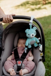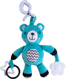 Cet ours en peluche est conçu pour les tout-petits dès 0 mois. Grâce au clip universel, vous l’attachez aisément à la poussette, au lit, au siège auto ou à l’arche de jeu. Sa surface toute douce invite aux câlins, tandis que le hochet délicat soutient la perception auditive et attire l’attention de bébé.