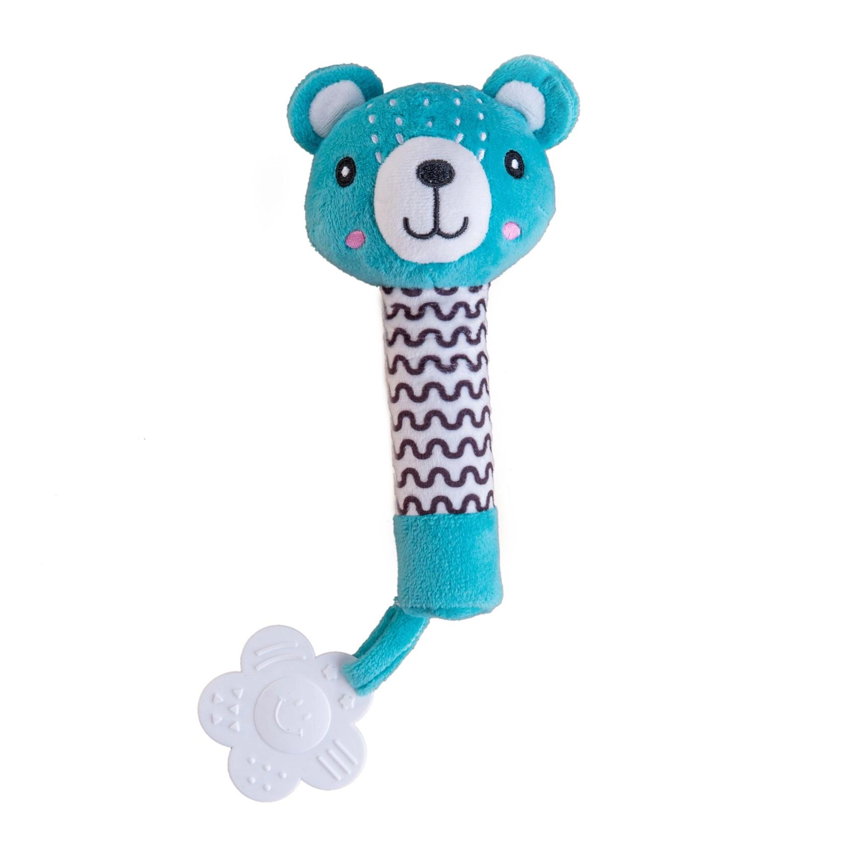Ce hochet tout doux avec anneau de dentition en forme d’ourson offre à bébé apaisement et amusement en un seul jouet. La poignée longue et fine se saisit facilement, le sifflement délicat stimule l’ouïe et l’anneau de dentition en forme de fleur aide pendant la poussée des premières dents. La peluche moelleuse est agréable au toucher et convient dès la naissance.