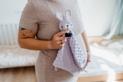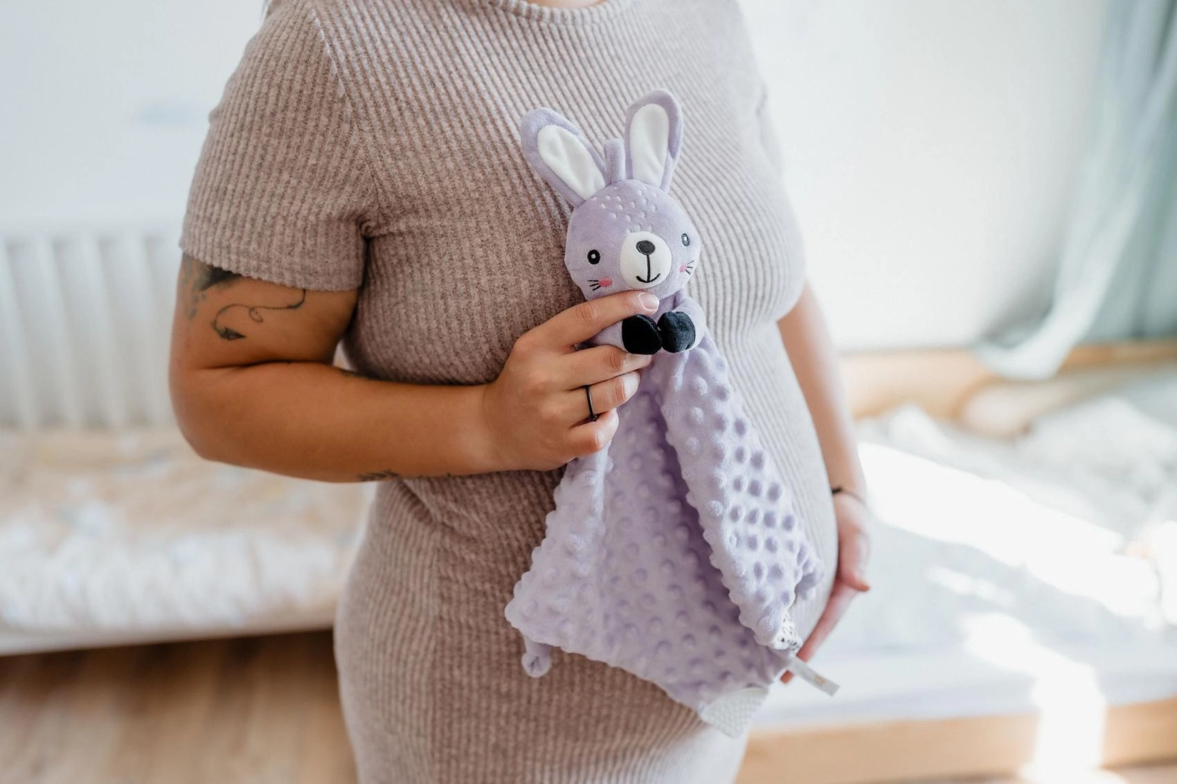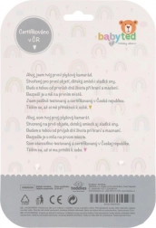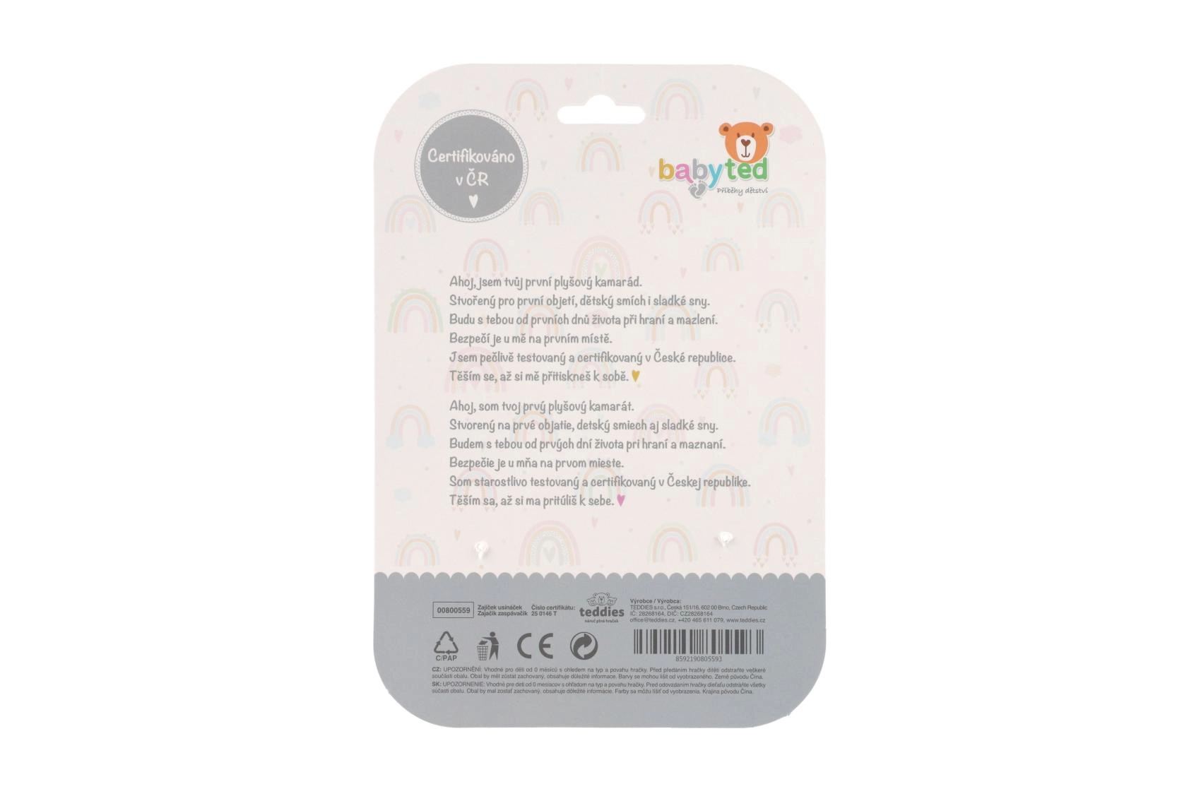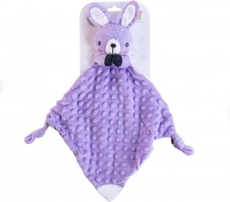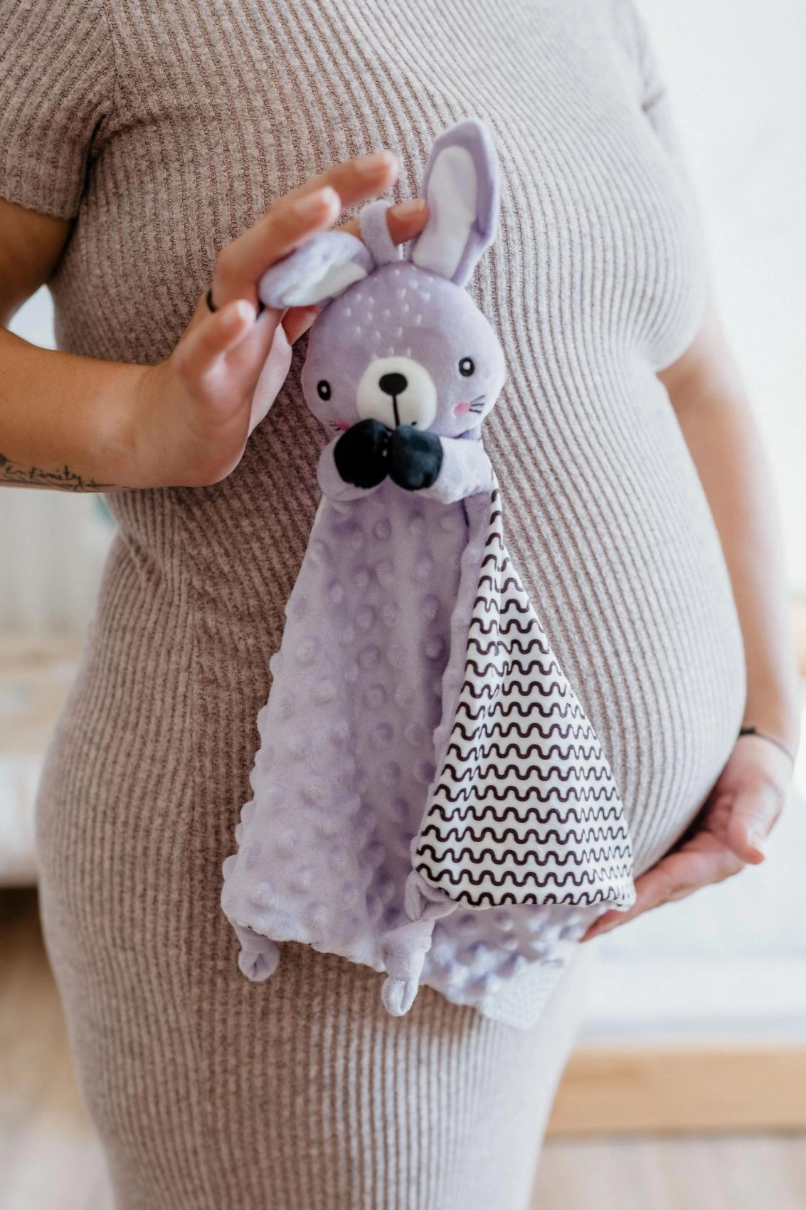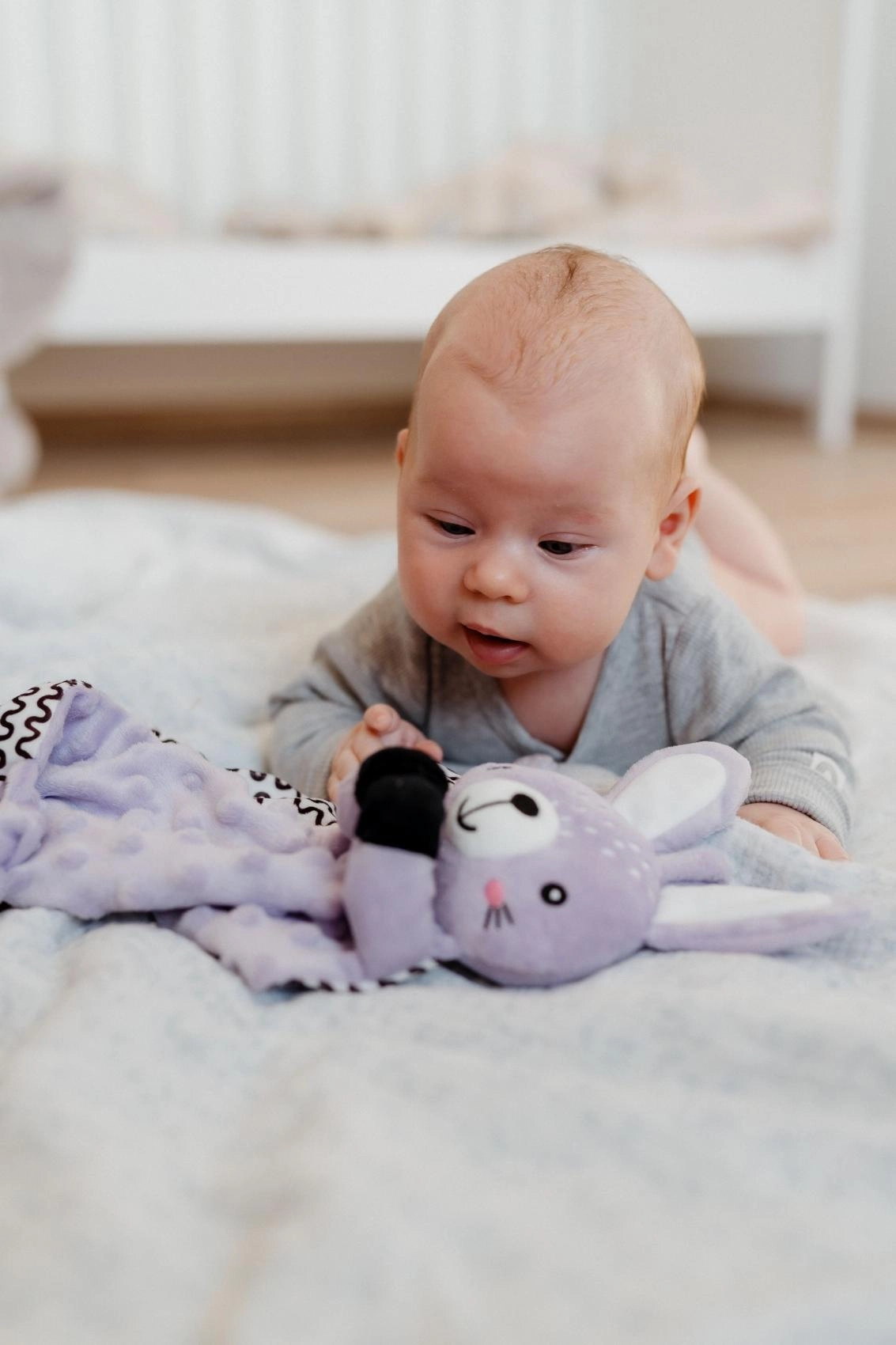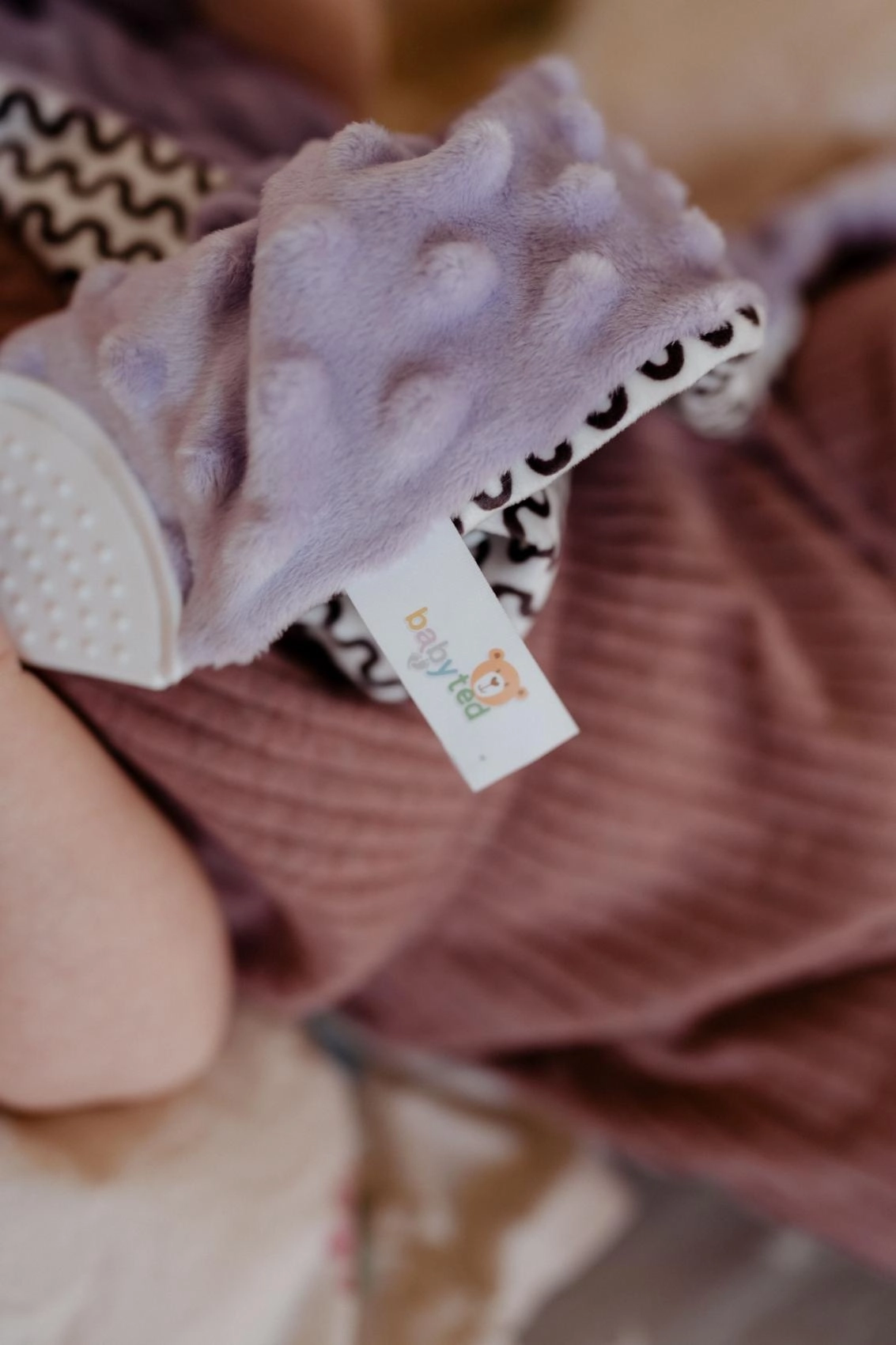 Un anneau souple placé dans un coin du doudou soulage lors de l’éruption des premières dents et soutient la motricité orale.