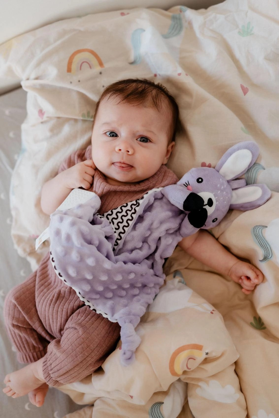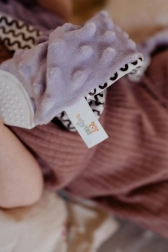 La matière minky ultra douce à pois en relief offre au bébé une stimulation tactile agréable et une sensation de sécurité à l’endormissement.