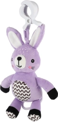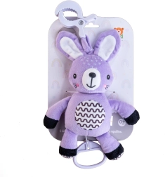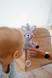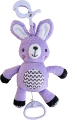 Ce lapin en peluche à suspendre apporte réconfort, stimulation douce et amusement sécurisé à la maison comme en voyage. Le mécanisme à remontoir joue une mélodie agréable après tirage, créant une ambiance calme propice au repos. Grâce au clip universel, le jouet se fixe facilement à la poussette, au lit, au siège auto ou à une arche.