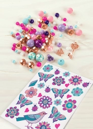 Le coffret comprend un élastique pour l’enfilage, 90 perles tendance, 3 breloques avec anneaux et une planche de tatouages temporaires. Un guide illustré et intuitif, étape par étape, permet une création facile même pour les débutants.