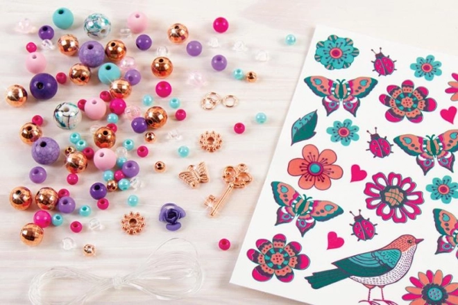 Développe ta créativité et conçois tes propres bracelets fleuris à assortir avec des tatouages temporaires. Grâce aux perles colorées, aux breloques et à l’enfilage simplifié, tu réaliseras en un rien de temps des bijoux qui raviront toutes les petites coquettes.