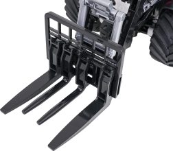 Phares avant et éclairage de cabine commandés depuis la télécommande. Le mode démo présente automatiquement tous les mouvements et fonctions du tracteur.