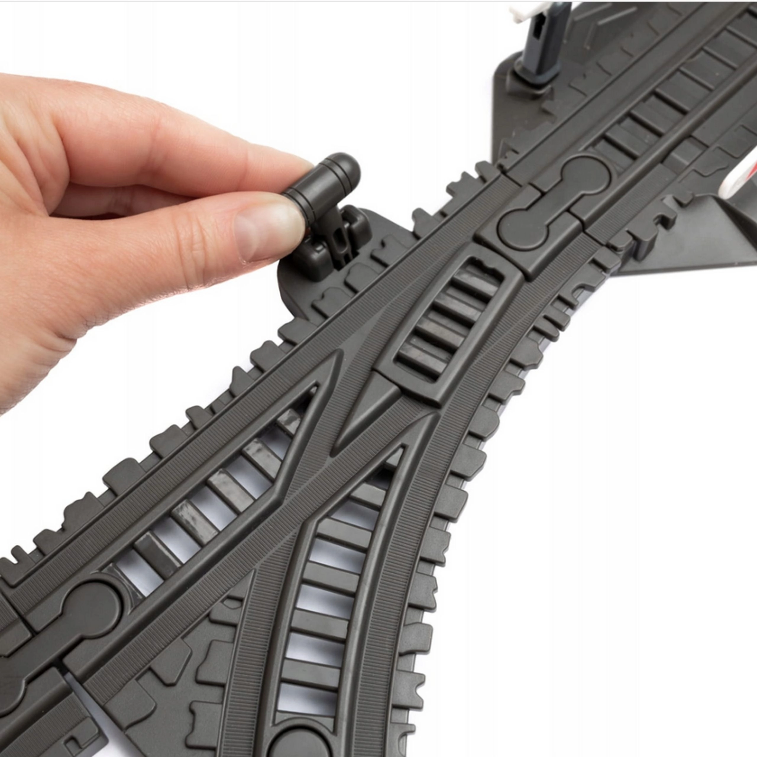 Les rails s’assemblent par simple clip, ce qui permet de modifier rapidement les formes et la longueur de la voie. Idéal pour expérimenter de manière créative avec différents layouts.