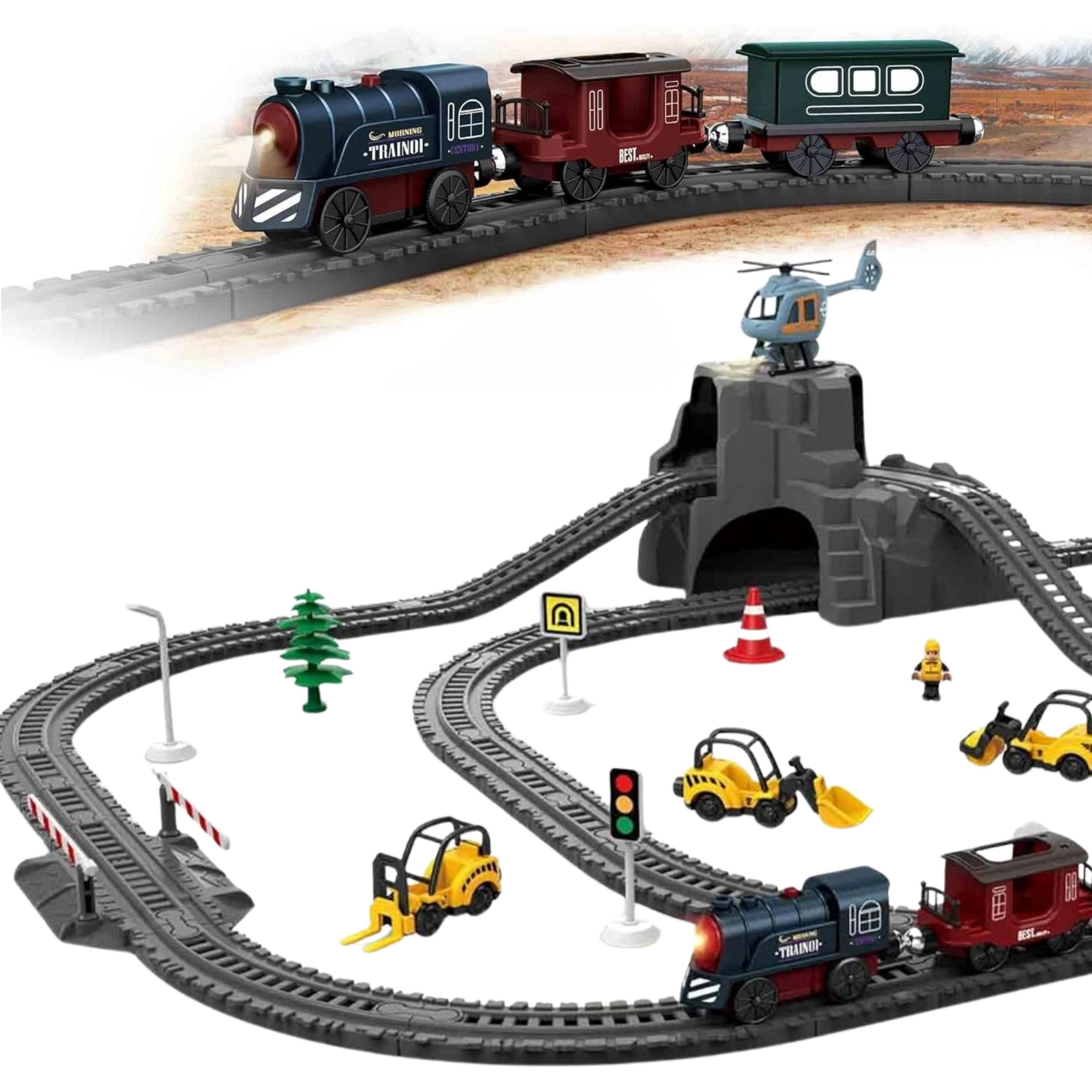 Une fois mise en marche, la locomotive roule toute seule sur les rails et son phare éclaire le trajet. Les enfants profitent d’un jeu dynamique sans manipulation compliquée.