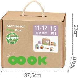 Découvrez un coffret malin pour les tout‑petits – la boîte Montessori 5‑en‑1 de la marque WOOPIE GREEN pour l’âge de 11–12 mois. Le pack contient 5 jouets sensoriels et éducatifs qui favorisent le développement psychomoteur, la pensée logique et la coordination main‑œil. Des matériaux sûrs, des stimulations naturelles pour la vue, le toucher et l’ouïe et un guide parental font de cet ensemble un cadeau idéal pour un enfant d’un an.