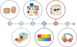 Un ensemble complet pour les tout-petits dès 7–8 mois, combinant les principes Montessori avec une riche stimulation sensorielle et l’entraînement de la motricité fine. Dans un seul coffret, vous obtenez 6 jouets intelligents fabriqués en matériaux sûrs et durables, qui développent la vue, le toucher et l’ouïe, favorisent la pensée logique et la coordination œil–main. Un guide parental est inclus pour un jeu facile et pertinent.