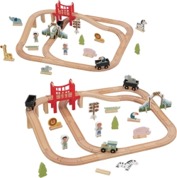 L’ensemble est conçu pour le jeu et le développement des compétences : l’assemblage des rails, la manipulation des figurines et la planification du parcours favorisent la créativité, la coordination œil-main et la patience. La fabrication en bois de qualité assure résistance et longévité, et l’ensemble est compatible avec la plupart des circuits de train en bois populaires.
