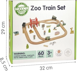 Le circuit de train en bois Woopie Green apporte la magie du zoo et des heures de jeu créatif dans la chambre des enfants. Le train avec wagons reliés par des aimants passe près de la girafe, de l’éléphant, du lion et des zèbres, franchit un pont surélevé et traverse la porte d’entrée. Grâce aux rails modulables, les enfants composent facilement un trajet selon leur imagination.