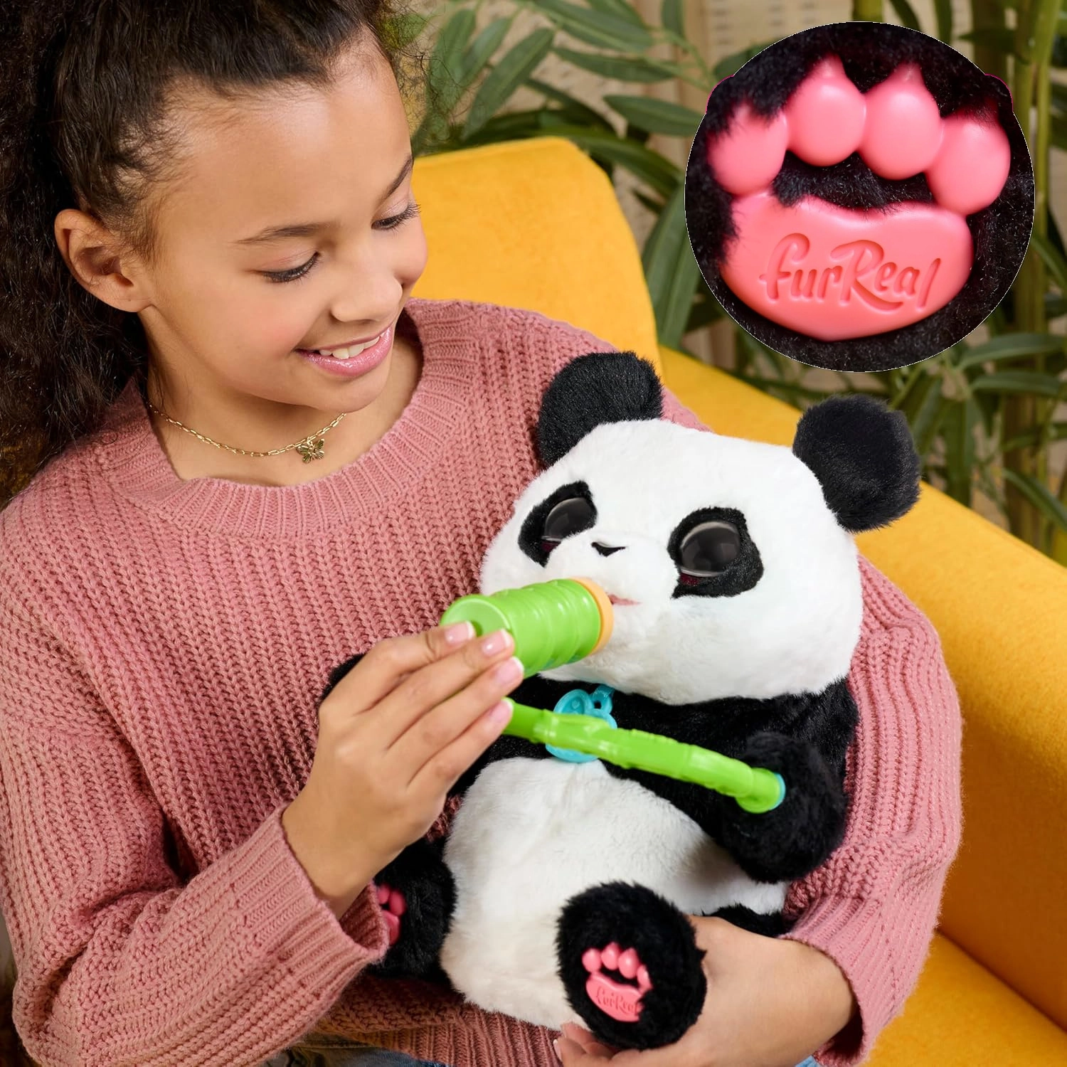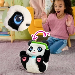 Adorable panda interactif FURREAL Coco de 27 cm offrant plus de 60 sons et mouvements pour un amusement sans fin. Elle adore rouler, faire des roulades et glousser, réagit au toucher de la tête et des pattes, et grâce au biberon et à la collation de bambou, vous pouvez aussi jouer à la nourrir. Sa fourrure toute douce, ses grands yeux bleus et le mode câlin apaisant en font un compagnon parfait pour les enfants dès 4 ans.