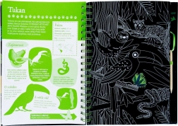 Ce livre ingénieux est divisé en deux parties – la première propose un panorama des animaux avec de nombreuses curiosités et informations accompagné d’images à gratter qui séduiront les enfants par leur côté ludique. La seconde partie offre des activités interactives, comme des quiz, des associations, des jeux de recherche, du dessin et des exercices à compléter, grâce auxquels les enfants consolident leurs nouvelles connaissances et s’amusent pendant des heures.