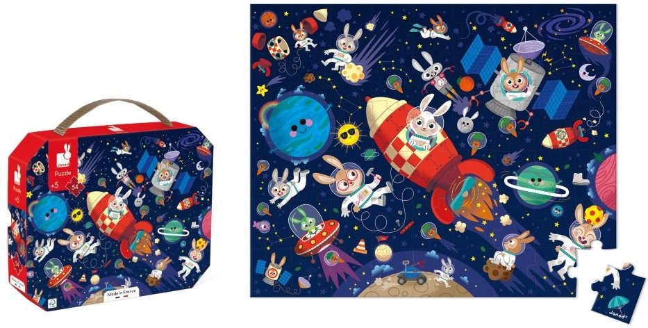 Ce puzzle stylé au thème spatial développe l’imagination des enfants, la patience et la motricité fine. La valisette en carton avec poignée permet aux enfants d’emporter le puzzle partout – en visite, en vacances ou à la maternelle. L’emballage comprend également un poster modèle qui aide lors de l’assemblage et favorise l’autonomie.
