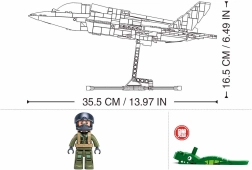 Le set comprend une minifigurine de pilote, des points d’emport avec armement simulé (roquettes et bombes) et un socle à assembler pour une présentation spectaculaire. Le plastique ABS de qualité garantit solidité, stabilité et longévité. Le kit est compatible avec les produits d’autres fabricants. Il favorise le développement de la motricité fine, de la créativité et de la patience.