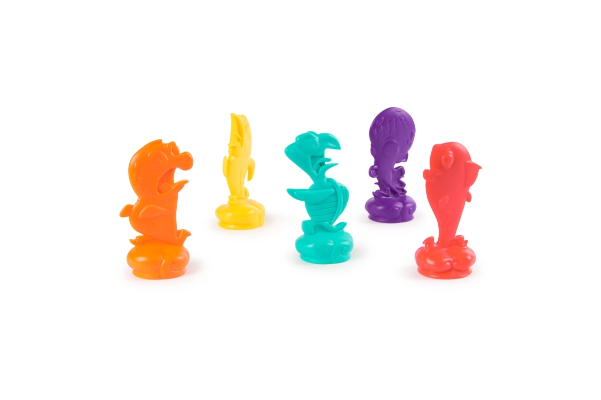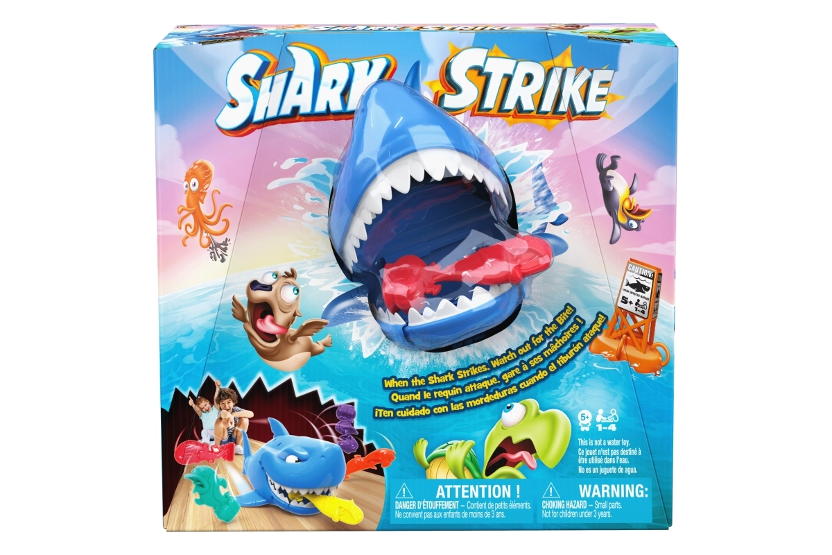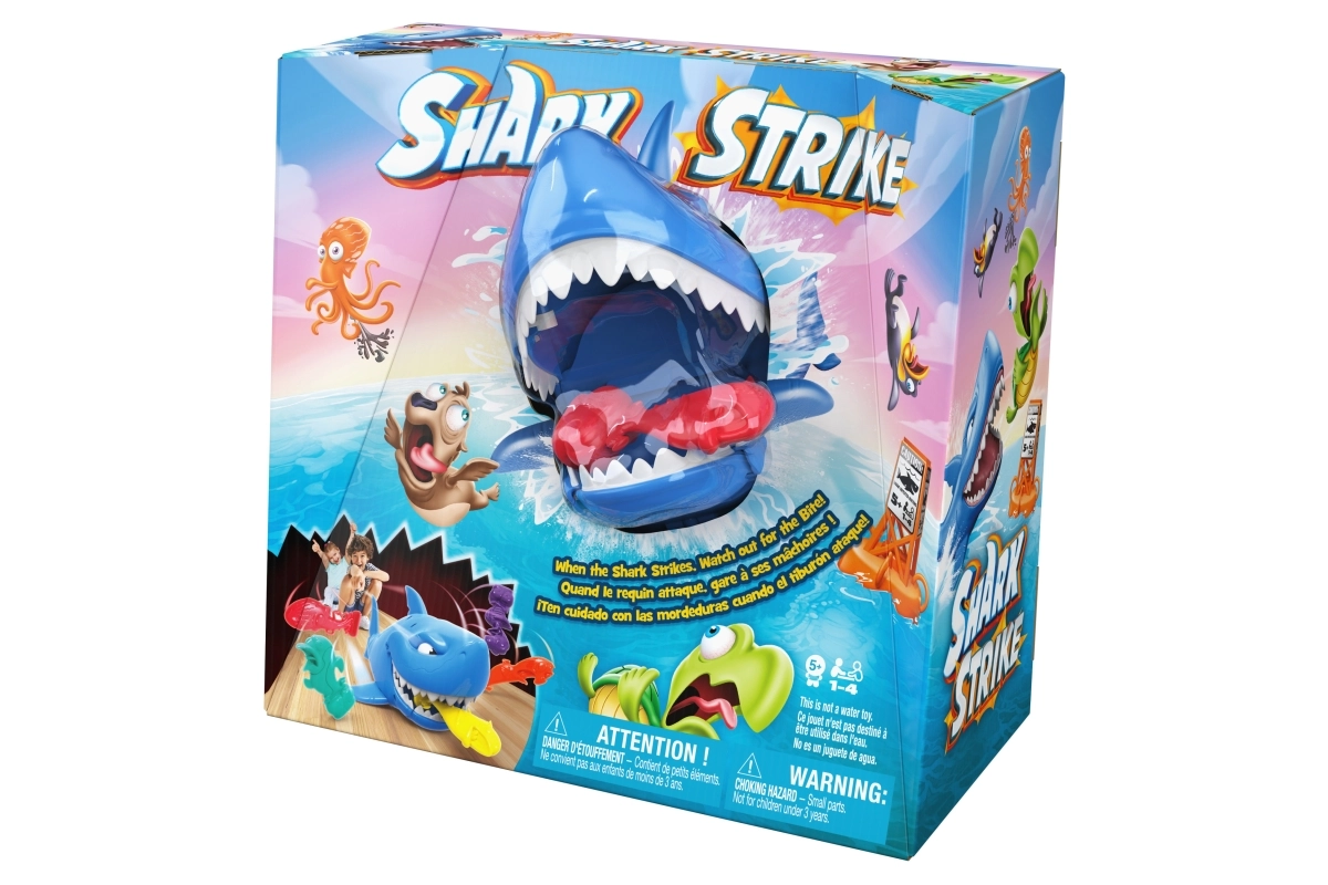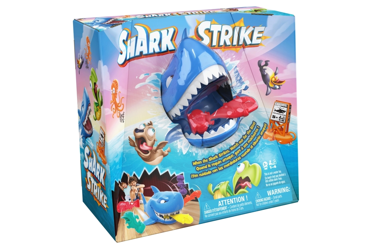 Lance le requin, vise les poissons de l’adversaire et amuse-toi comme jamais ! Les joueurs placent leurs figurines colorées au sol, le plus jeune commence, remonte le requin et le met en action. L’objectif est, en trois tentatives, de prendre le plus de poissons possible à l’adversaire – celui qui en attrape le plus gagne.