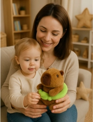 Cette capybara en peluche marron est fabriquée en peluche douce et de qualité et rembourrée d’un matériau hypoallergénique pour un confort maximal et une sécurité accrue lors du jeu comme du sommeil. La bouée verte amovible avec sa grenouille souriante stimule le jeu créatif et développe l’imagination des enfants.