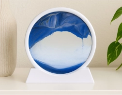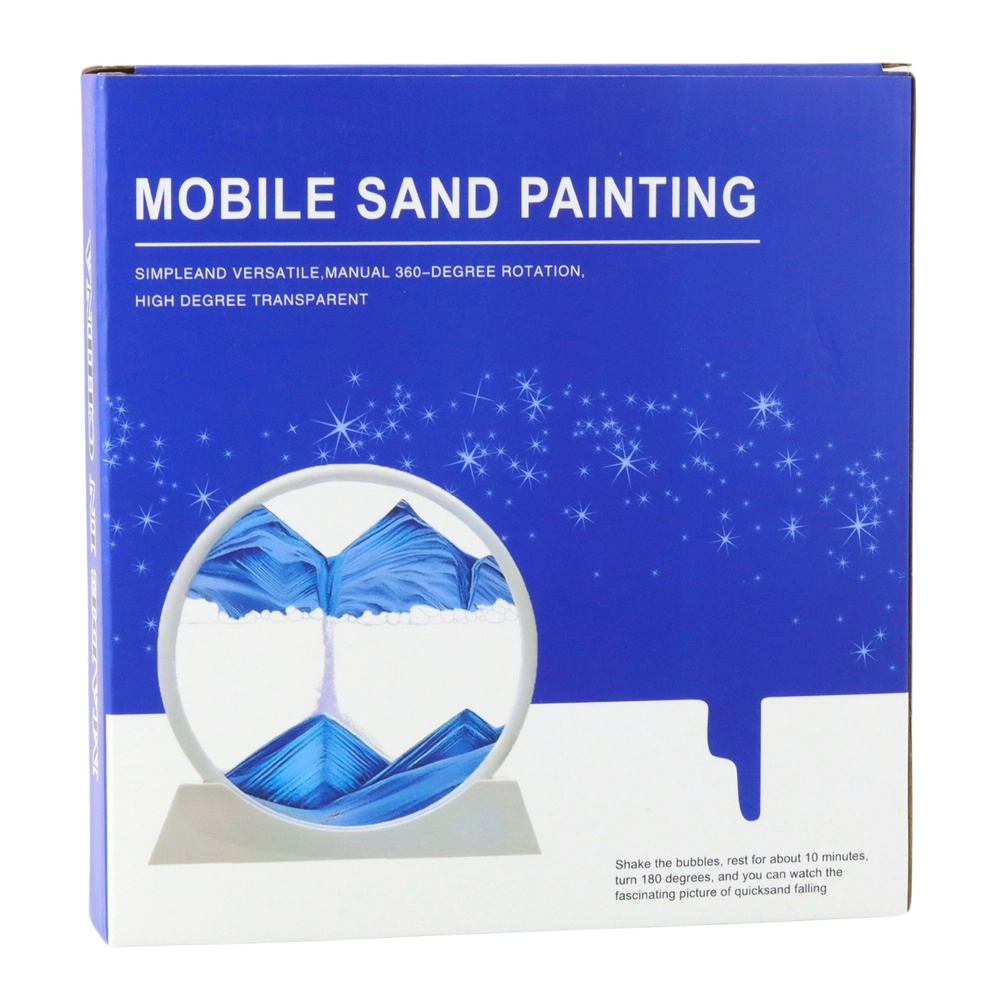 Décoration élégante avec effet de sable mouvant 3D dans un cadre rond blanc offrant une expérience apaisante et antistress. En tournant à 360°, le sable tombe lentement et crée des paysages uniques – montagnes, dunes et vagues. Idéal pour le salon, le bureau, la chambre ou l’atelier.