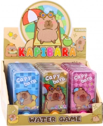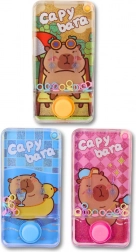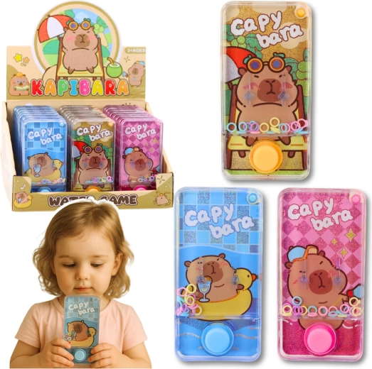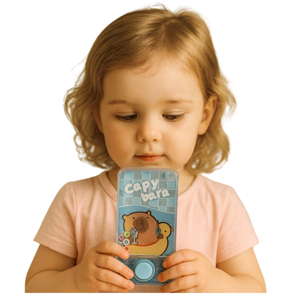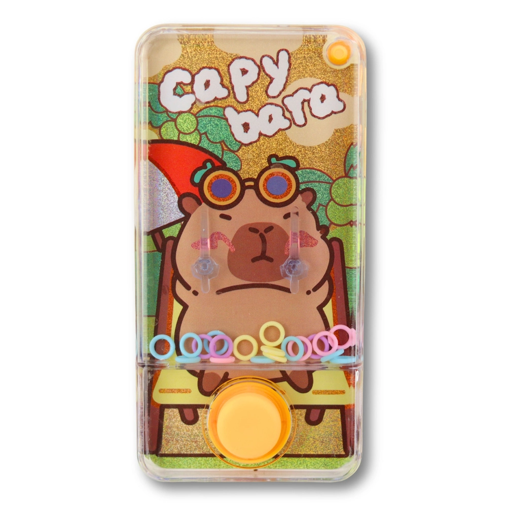 Un jeu à anneaux aquatique amusant au motif de capybara ravira enfants et adultes. Il suffit d’appuyer sur le bouton pour que le courant d’eau propulse les anneaux colorés sur les picots. Format compact 12,5 × 6,5 × 2 cm, sans piles, léger et idéal pour les voyages. Disponible en trois couleurs – bleu, orange, rose.
