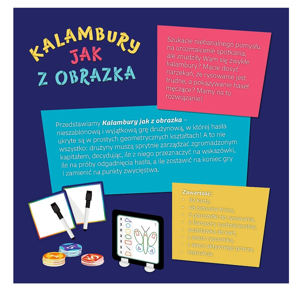 Oubliez la pantomime classique – ici, vous composez les indices à partir de formes ! Décidez quelles pièces acheter, comment les assembler et quelles ressources consacrer aux tentatives. L’emporte l’équipe qui combine habilement imagination visuelle et gestion intelligente des ressources.