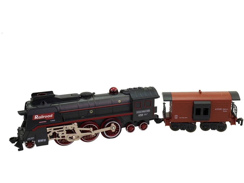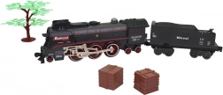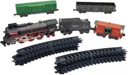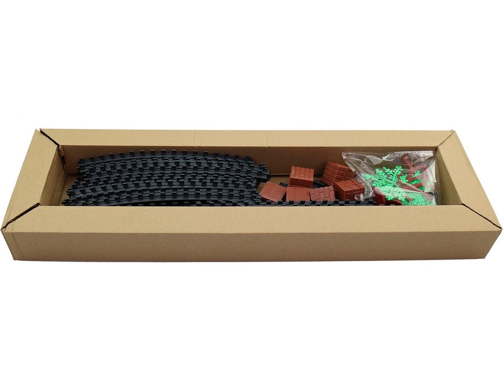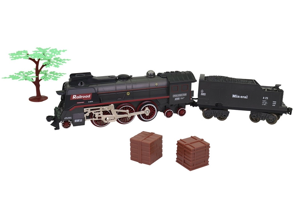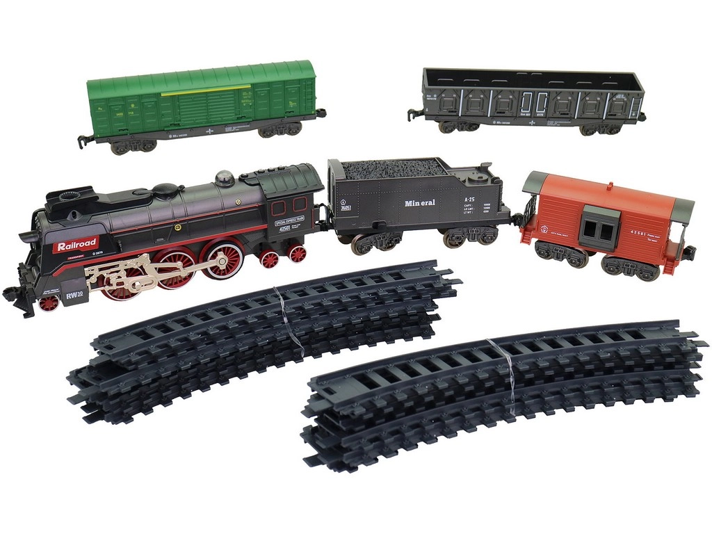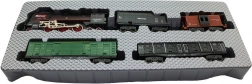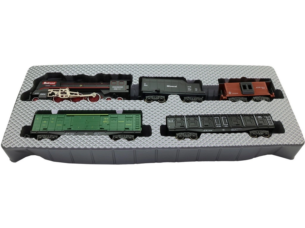La locomotive avec tender et wagons de marchandises, y compris des rails courbes, forment un ovale jusqu’à 151 × 92,5 cm.