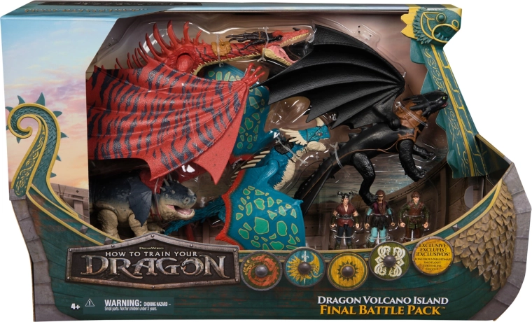 Ce coffret sous licence de l’univers HOW TO TRAIN YOUR DRAGON (Dragons) apporte l’aventure du film dans la chambre des enfants. Les quatre grands dragons – TOOTHLESS (Krokmou), DEADLY NADDER, GRONCKLE et MONSTROUS NIGHTMARE – présentent une sculpture détaillée, des couleurs marquées et des ailes et membres articulés pour des poses dynamiques.