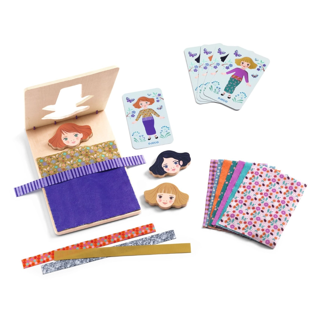 Développez la créativité des petites stylistes avec ce set ludique de la marque DJECO. Les enfants peuvent combiner couleurs, motifs et accessoires pour créer leurs propres tenues stylées – la création est intuitive, amusante et stimule la motricité fine ainsi que l’imagination.