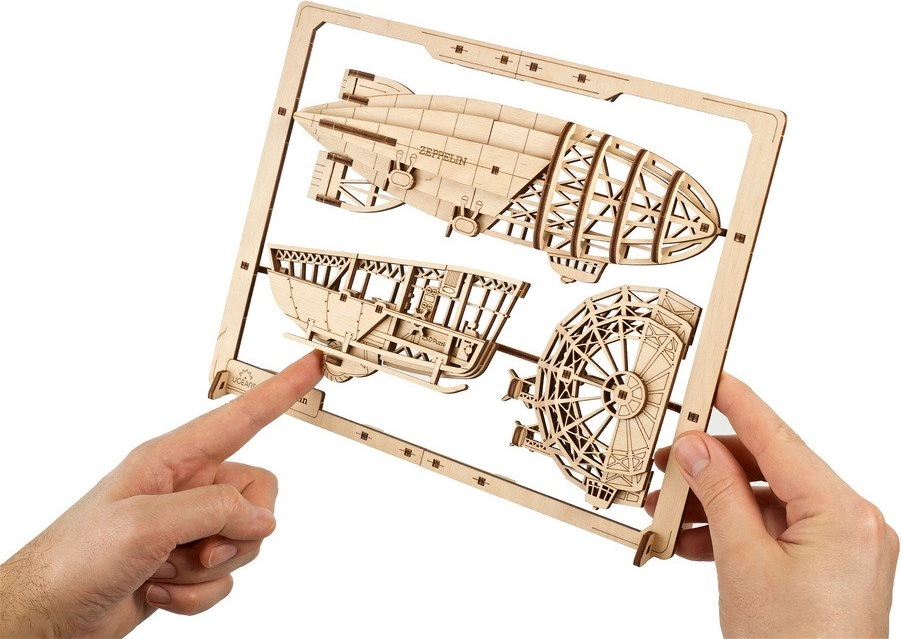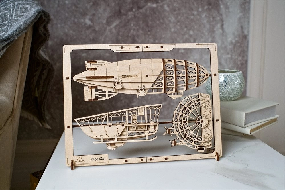 Le puzzle 3D en bois UGEARS Zeppelin 2,5D combine un matériau traditionnel avec un mouvement mécanique. Le montage est intuitif et amusant – les pièces sont découpées au laser avec précision et se détachent facilement des plaques, sans aucun besoin de colle. Une fois assemblé, vous obtenez un modèle détaillé de dirigeable avec nacelle et hélice, qui devient une décoration originale ainsi qu’un support pédagogique.