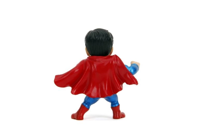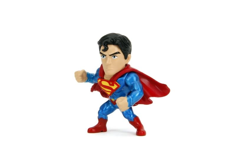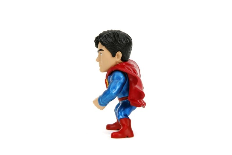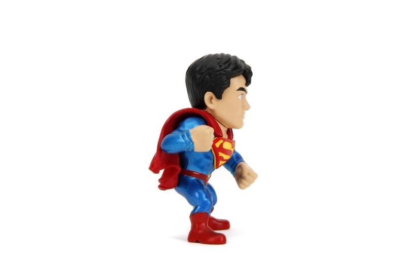 Tenue bleue, cape rouge et logo jaune « S » – la figurine restitue fidèlement l’apparence de SUPERMAN dans une pose de combat dynamique.