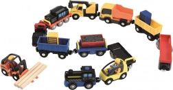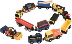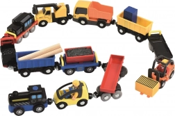 Ce set polyvalent enrichit tout circuit de train pour enfants avec une locomotive, des wagons et des engins de chantier. Les pièces se connectent facilement grâce aux attelages magnétiques et roulent sans à-coups sur surface plane comme sur des rails compatibles. Des éléments réalistes, comme le chargement de grumes, de charbon ou le transport de voitures, inspirent des jeux d’histoires créatifs.
