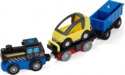 La locomotive avec wagon à charbon et wagon à grumes plonge les enfants dans l’univers ferroviaire. Dételer et atteler les wagons développe la motricité fine et le jeu imaginatif.