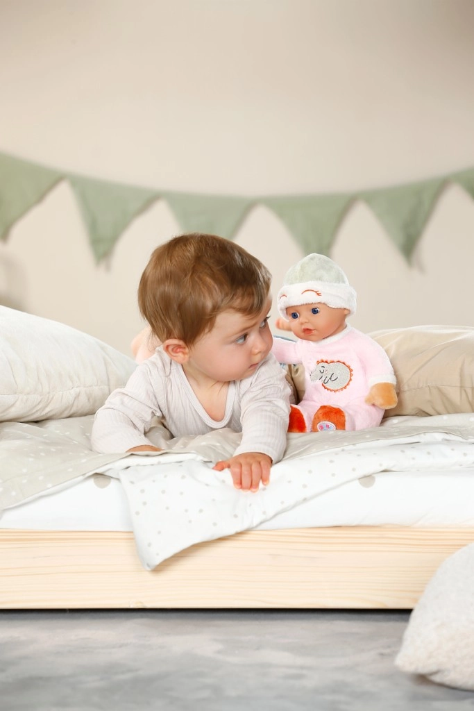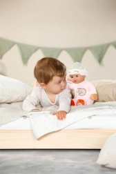 La ravissante poupée BABY born for babies Spinkáček est un doudou tout doux pour les bébés dès la naissance. Elle possède un corps textile agréable, un hochet intégré pour une douce stimulation sensorielle et une adorable tenue avec une broderie de crocodile endormi. Légère, sûre et lavable à la main – idéale pour câliner, s’endormir et faire ses premières découvertes.