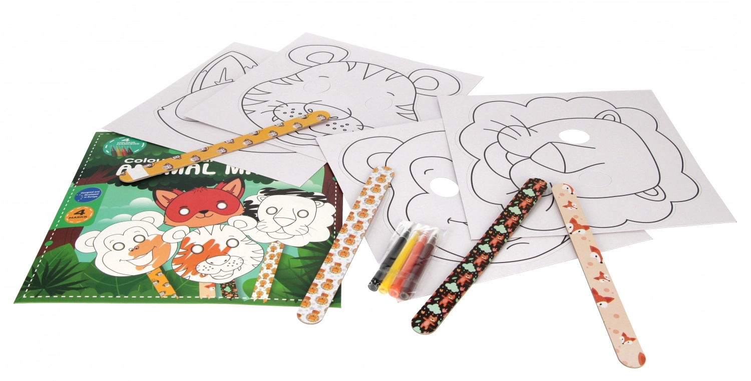 - 4 modèles de masques, 4 bâtonnets de fixation, 4 feutres