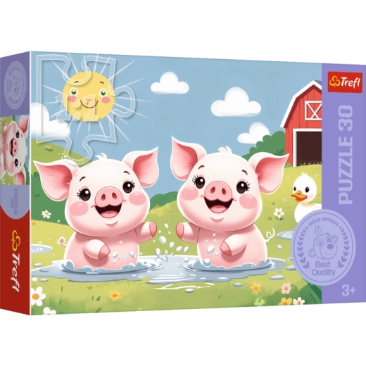 Découvrez le ravissant puzzle Trefl « Joyeuse vie à la campagne », qui séduira tous les petits amoureux des animaux. L’ensemble de 30 pièces forme une image joyeuse avec deux cochonnets jouant dans une flaque de boue. Grâce au papier calandré spécial, les pièces sont agréablement brillantes et s’emboîtent facilement.