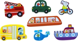 Amusant puzzle d’encastrement en bois sur le thème des moyens de transport, qui développe la motricité fine et la pensée logique des enfants dès 18 mois. Contient 7 pièces façonnées qui s’insèrent parfaitement dans la base et peuvent également être utilisées séparément pour jouer. Le puzzle est connectable à d’autres thèmes et permet de créer un cercle coloré de scènes sur les transports, les animaux ou le monde sous-marin.