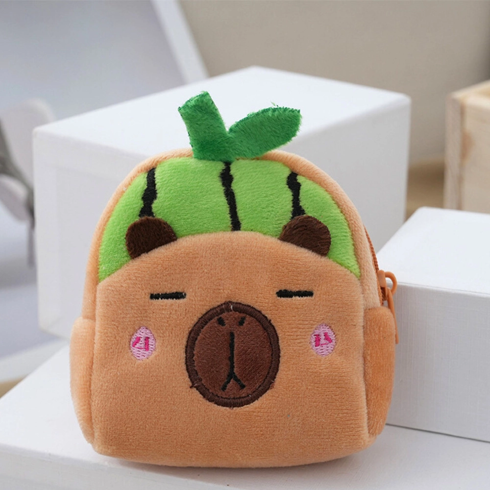 Adorable et pratique mini porte-monnaie en forme de capybara avec motif de pastèque verte. Grâce à sa peluche douce, il est agréable au toucher, dispose d’une fermeture zippée pour garder les petits objets en sécurité et d’un clip en plastique pour l’accrocher à un sac à dos ou à des clés. Ses dimensions compactes 9,5 × 8 cm se glissent dans une poche, un sac ou un cartable.