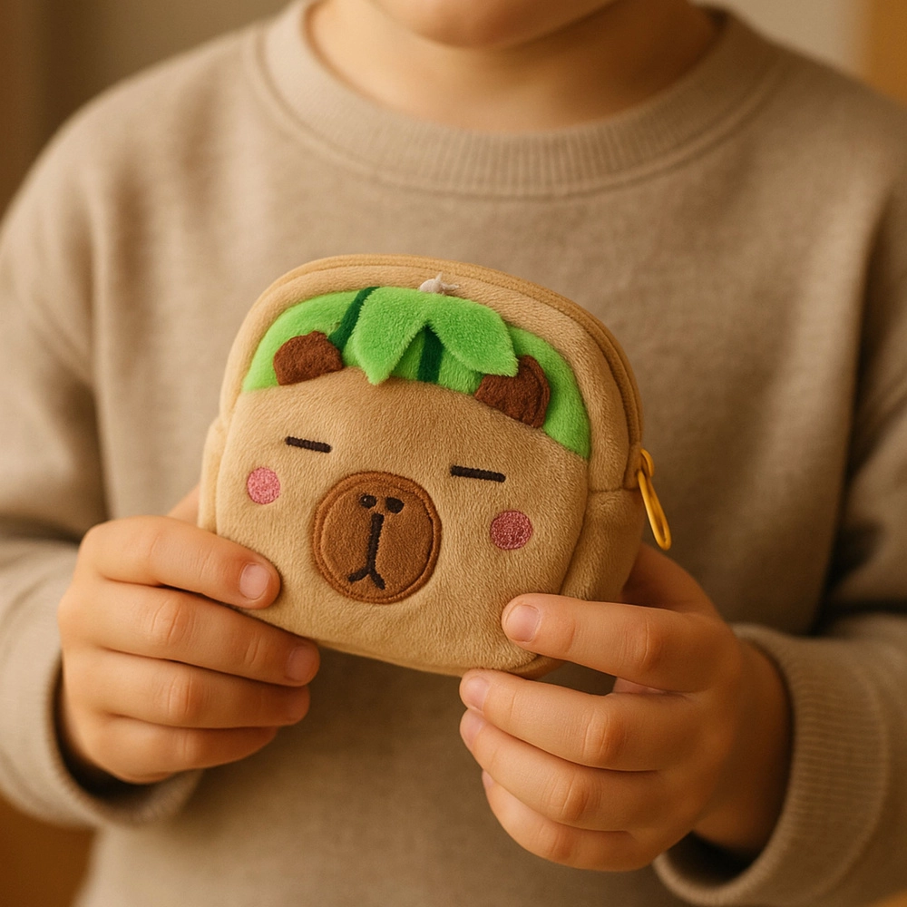 Ce porte-monnaie en peluche – capybara ravira les enfants et les amoureux des accessoires mignons. La matière douce est agréable au toucher, la fermeture éclair garde pièces, clés et petits accessoires en sécurité, et grâce au clip pratique vous l’avez toujours sous la main.