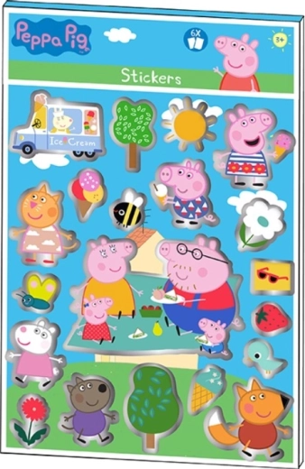 Un joyeux set d’autocollants à l’effigie de Peppa Pig ravira tous les petits fans. Il contient 6 feuilles remplies d’autocollants colorés au format 23 × 15 cm, idéaux pour décorer cahiers, journaux intimes, cartes de vœux ou créations.